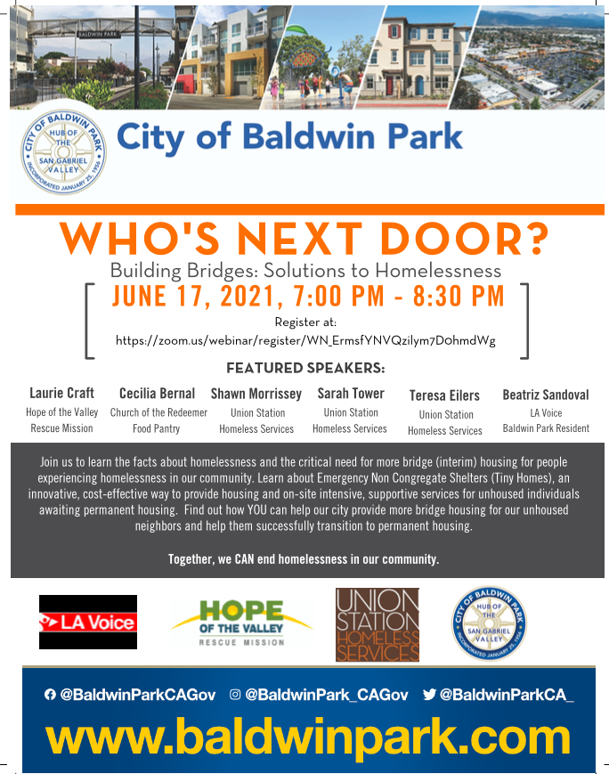 Who’s Next Door? – Building Bridges: Solutions to Homelessness June 13, 2021 admin Calendar When: June 17, 2021 @ 7:00 pm – 8:30 pm 2021-06-17T19:00:00-07:00 2021-06-17T20:30:00-07:00 Cost: Free Contact: Event website